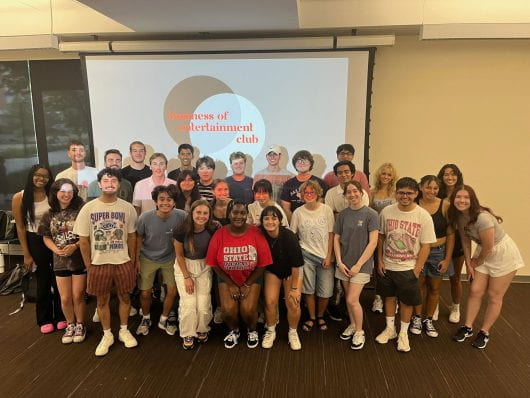 The Business of Entertainment Club held its End of Year Showcase at Casa Cacao. The event featured live music, digital art, and student films.