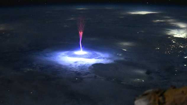Astronauts on the International Space Station (ISS) have taken amazing photos of bright flashes above Earth’s storms. These flashes are called red sprites and other transientluminous events. They happen very high in the sky, above thunderclouds, and last only a short time.
